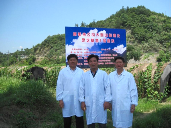 公司董事長余春賦和靈芝專家沈業(yè)壽教授及基地負(fù)責(zé)人李文海在一起
