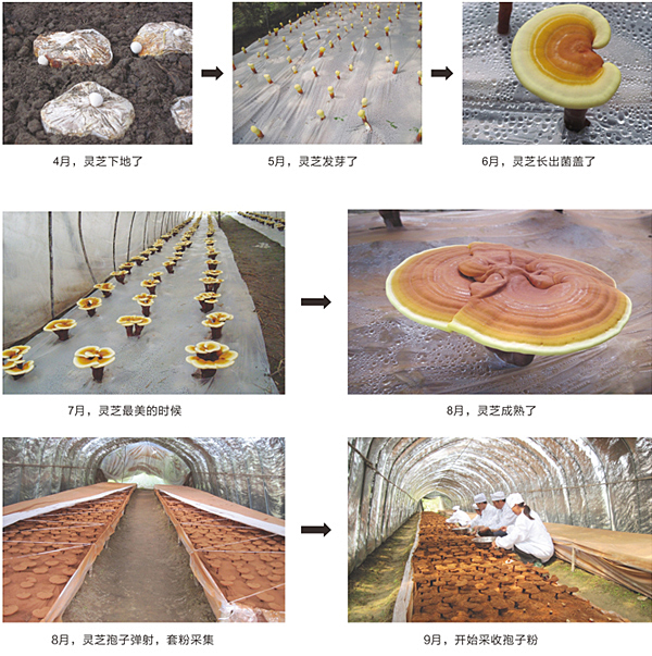 靈芝,譽(yù)為仙草,有其復(fù)雜的生長過程。從靈芝的選種,育種,培種,菌絲,菌棒下地及生長,成熟到彈粉,收集需一年時(shí)間,工序繁多。