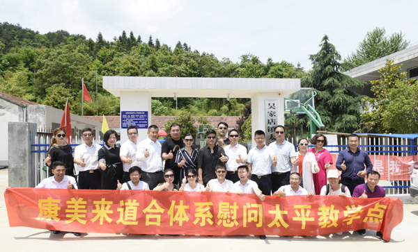 2017年6月8日上午,康美來大別山生物科技有限公司道合體系核心領(lǐng)導(dǎo)一行25人,驅(qū)車百里趕到位于大別山深處的吳家店鎮(zhèn)太平教學(xué)點(diǎn),慰問在這里學(xué)習(xí)的63名山村孩子。