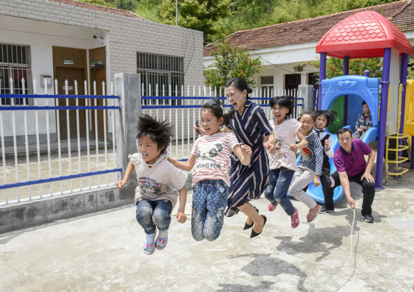 隨后,道合體系負(fù)責(zé)人與該校的孩子們舉行互動游戲,跳繩的跳繩,打球的打球,歡聲笑語不絕于耳,飄出校園,飛向高山密林。
