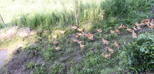 余董還前往大別山土雞養(yǎng)殖場,一只只土雞正在山林地吃蟲吃草,喝泉水。李福寶教授說,這些土雞現(xiàn)在已成為青年雞,非常健康?,F(xiàn)在正處高溫氣候,要注意降溫和雞舍衛(wèi)生。