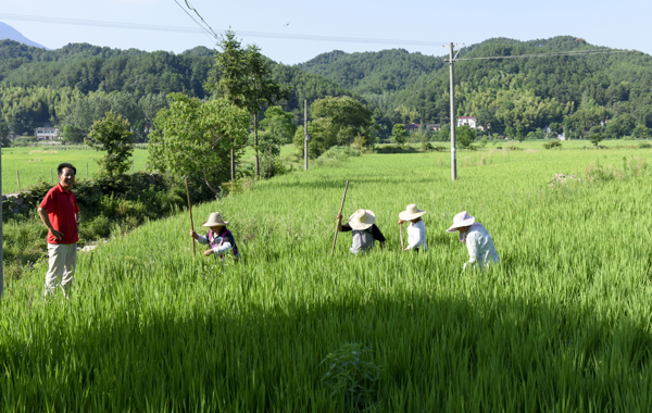 7月23日,余春富董事長和安徽農(nóng)業(yè)大學(xué)專家丁克堅教授、李福寶教授專程前往康美來集團(tuán)云湶谷公司大別山長嶺農(nóng)場,觀察高山有機香稻生長情況,50多位農(nóng)場農(nóng)民工正在稻田里除草,用人工的方法,拔掉每一顆雜草。董事長說,這種原始方法我們雖然人工成本高,但堅決不用除草劑,嚴(yán)格按有機稻標(biāo)準(zhǔn)生產(chǎn)作業(yè)。云湶谷農(nóng)場是康美來會員自家的農(nóng)場,確保高品質(zhì)生產(chǎn),不打農(nóng)藥,不施化肥,不用除草劑。