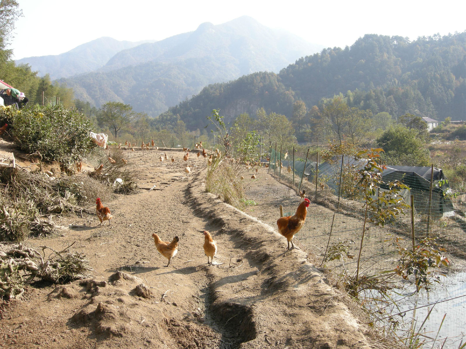 2017年10月28日,安徽農(nóng)業(yè)大學李福寶教授在公司總裁助理尹維龍的陪同下,來到云湶谷大別山散養(yǎng)雞場進行技術指導,一只只散養(yǎng)雞正在山林地里愉快地吃蟲吃草,喝著山泉水。晚上回窩后還喂食有機靈芝孢子粉(工廠下腳料),一方面能提高土雞抗病力,另一方面通過生物轉化,增加雞蛋營養(yǎng)。