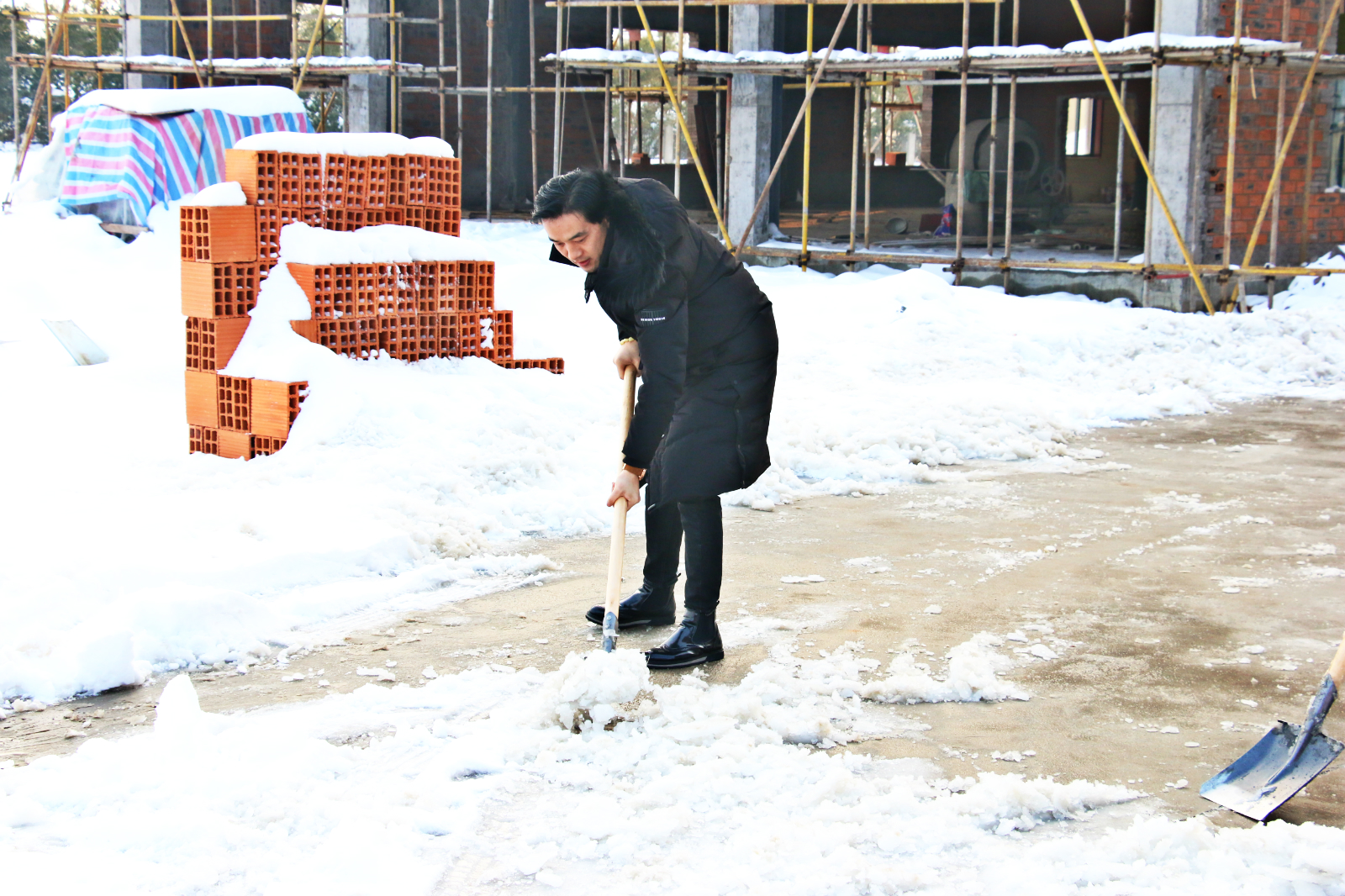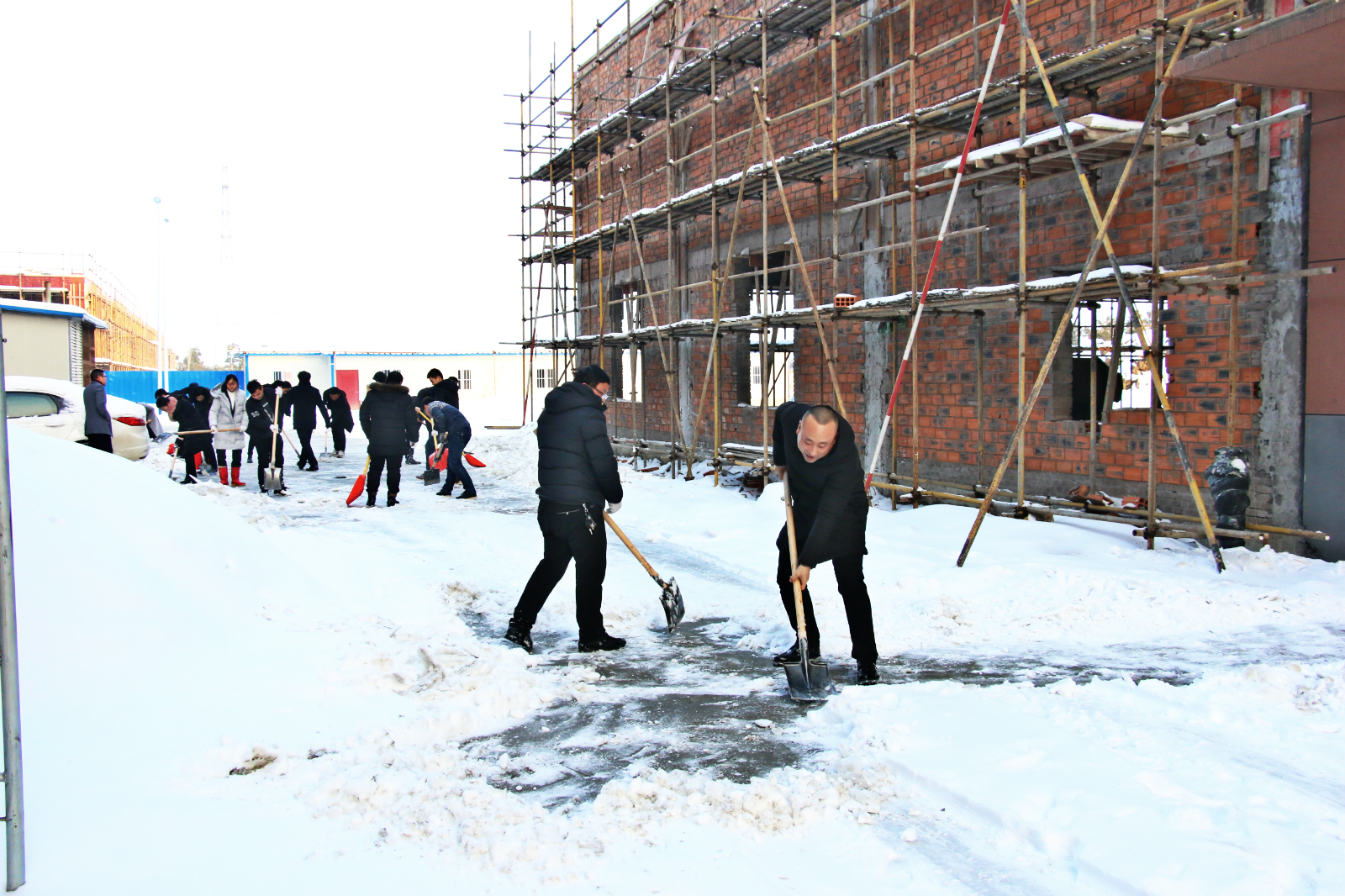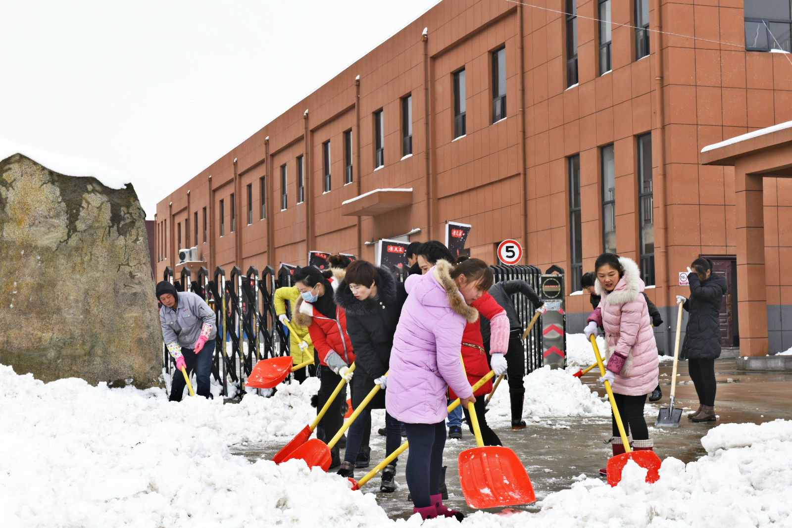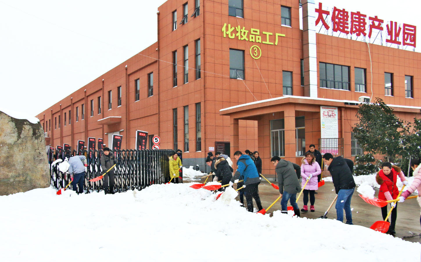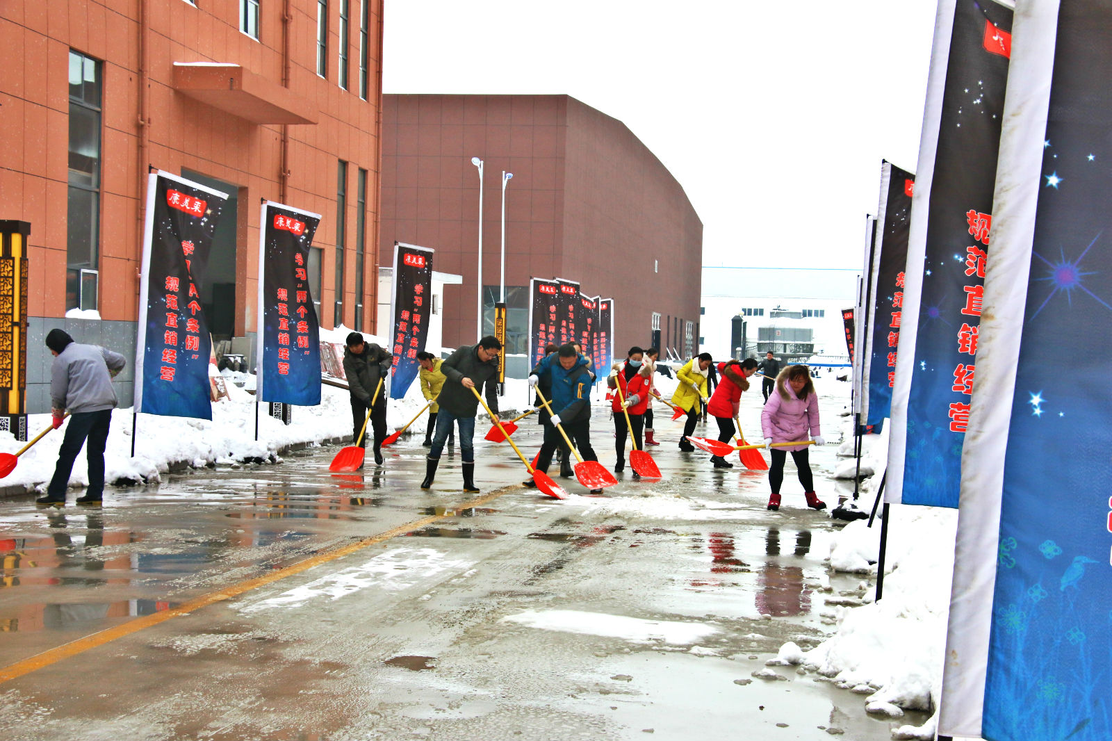 冒著瑟瑟寒風(fēng)進行廠區(qū)道路的掃雪清理工作