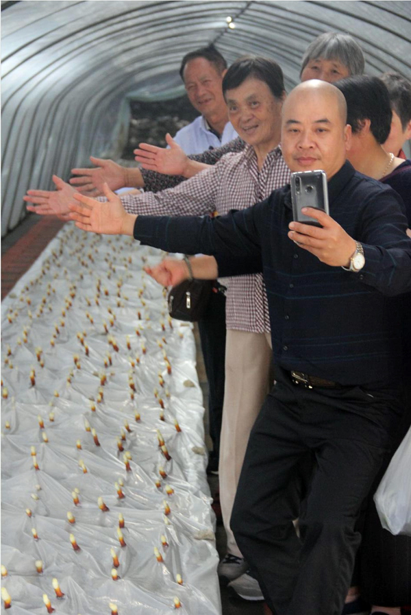 伙伴們見到余董和沈教授感到意外和驚喜,紛紛要求拍照留念,燦爛的笑容和靈芝一樣美麗。