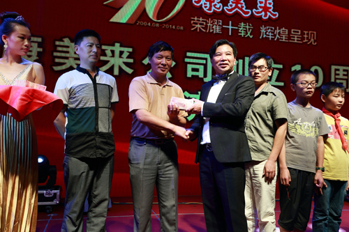 2014年8月,在康美來(lái)公司10周年創(chuàng)業(yè)輝煌晚會(huì)上,余春賦董事長(zhǎng)把110400元現(xiàn)金現(xiàn)場(chǎng)捐助給金寨縣沙河鄉(xiāng)中心小學(xué)、燕子河鎮(zhèn)樹林小學(xué)、青山鎮(zhèn)姜河中心小學(xué)184名貧困學(xué)生,支持政府雨露計(jì)劃。公司自2014年起,發(fā)動(dòng)公司干部和伙伴開展結(jié)對(duì)扶貧助學(xué),奉獻(xiàn)愛心,回饋社會(huì)。2014年由過(guò)去的117名,增加到184名學(xué)生,由2所小學(xué)增加到3所小學(xué)。扶貧辦主任劉澤祥參加捐助活動(dòng)并講話。